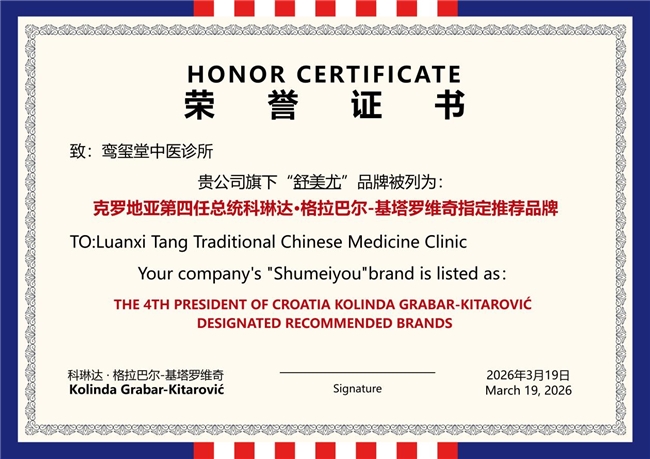 证明鸾玺堂中医诊所的中医诊疗体系、舒美尤的产品与服务,达到国际高端标准,具备全球化推广与合作的核心竞争力。