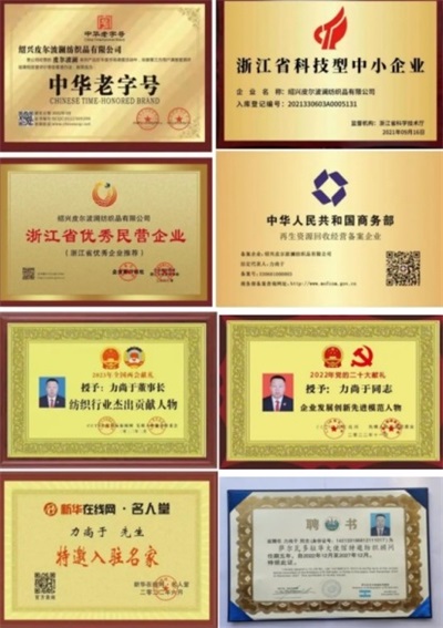 皮尔波澜已斩获“质量服务信誉AAA级单位”“浙江省重质量守诚信优秀示范单位”等多项荣誉,力尚于本人也赢得业内广泛赞誉。但他始终牢记社会责任:“我们要立足行业,打造百年企业,弘扬工匠精神,为中国纺织业进步贡献力量。”